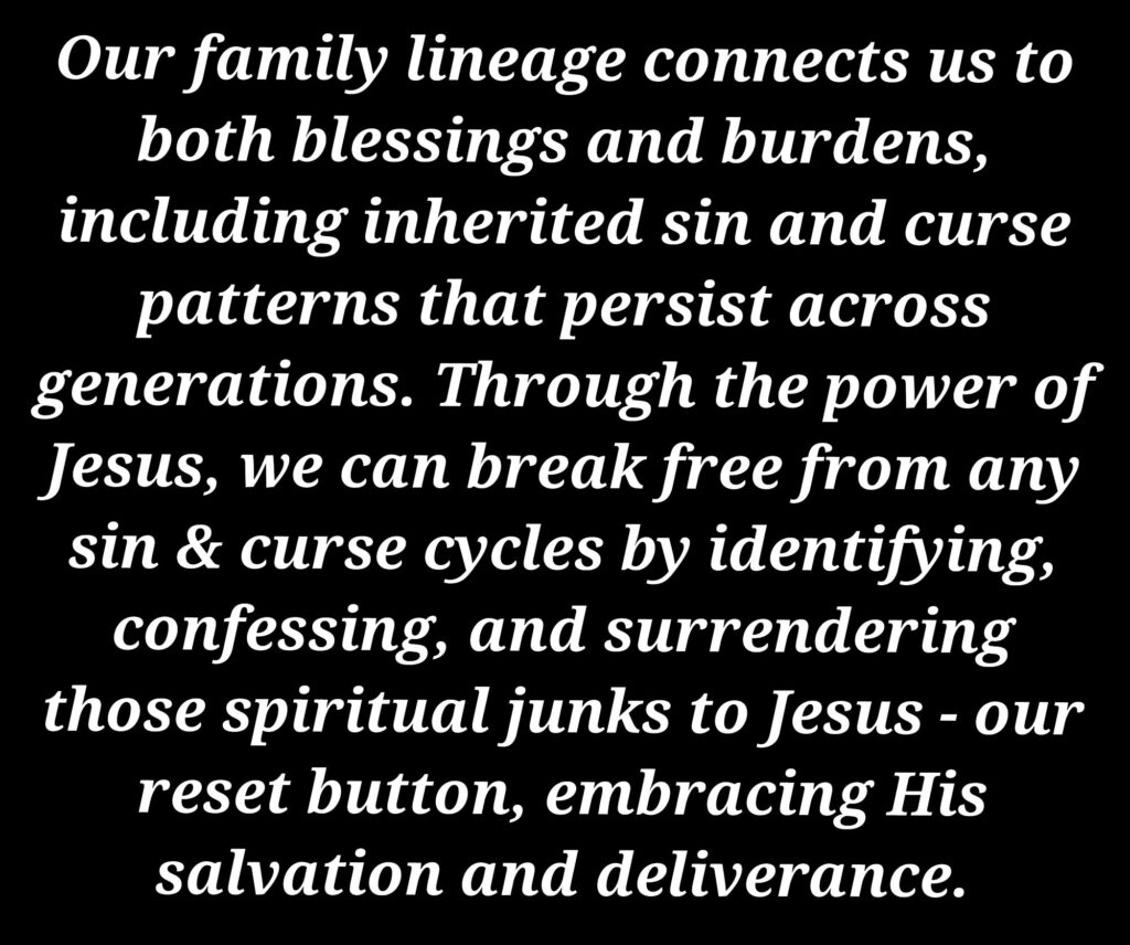 Just as our families pass down good heritage, they may also pass down burdens—sin patterns and curses that persist across generations. Some of these patterns that thrive in our lives stem from our genealogical roots and ancestors. Unless we break free from them, these cycles will continue.