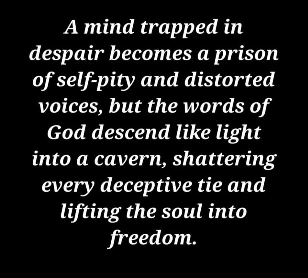 It is a snare, a silent, merciless trap of the mind. A prison that coils around the soul and drags it into a cavern of unending despair. It turns the mind inward until it drowns in its own shadows, feeding it with flawless self-pity and faultless self-justification while twisting every voice around it into echoes of bitterness and threat.