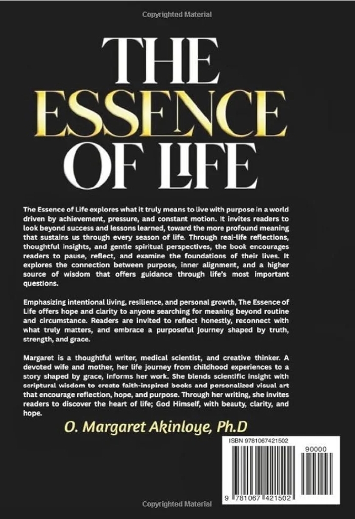 The Essence of Life weaves together lessons from real-life experiences, nature, lesson from the history of some great icons, and reflective insights to challenge the “black-and-white” narratives that can shape how we see ourselves, our pain, and our calling. It invites the reader to rise above circumstances and rediscover purpose, especially in seasons that feel confusing, delayed, or heavy.