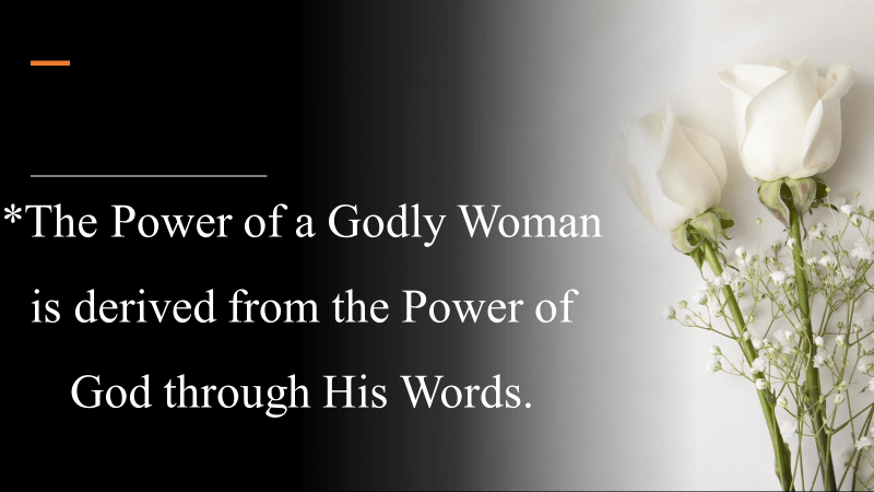 A godly woman derives strength from the Lord. She is an emblem of love and a bag of grace. Her resilience is outstanding, and within her is a well of knowledge. She understands the object of her quest in this world and consistently leaves a footprint of kindness, hospitality, and godliness on her paths.